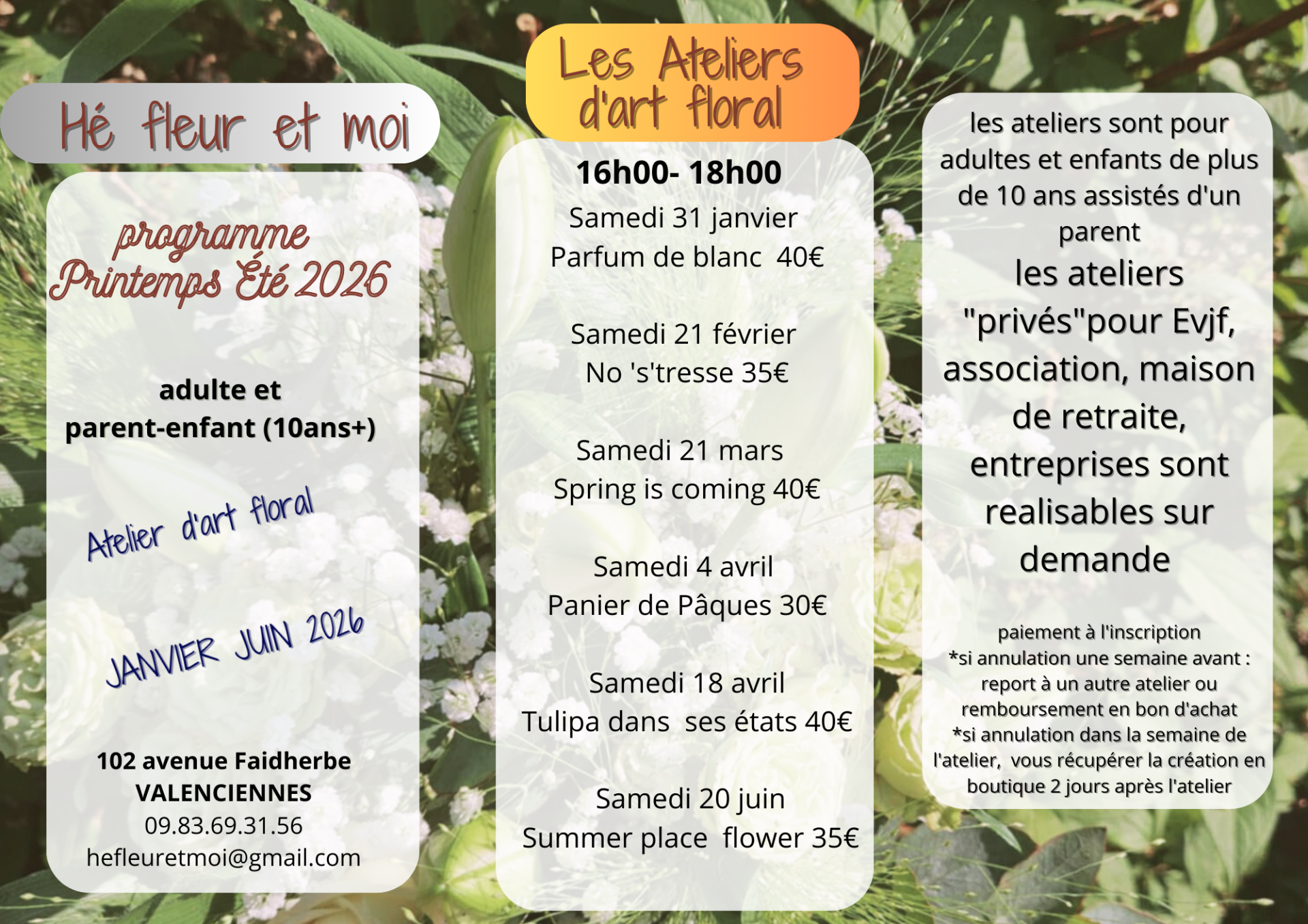 faites vous plaisir, inscrivez vous aux ateliers d'art floral de votre fleuriste Hé fleur et moi